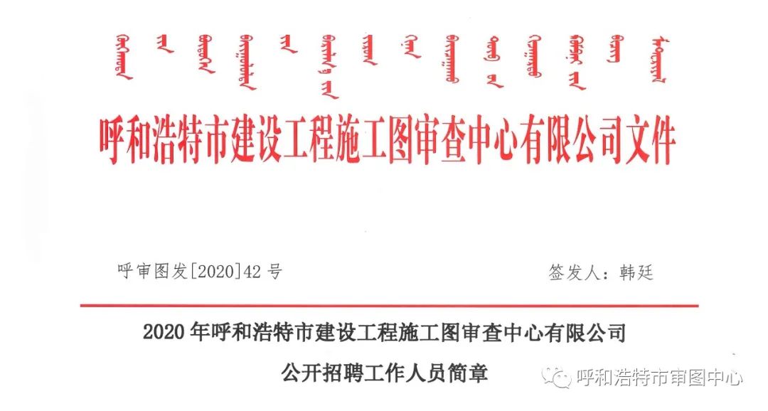 本簡(jiǎn)章由呼和浩特市建設(shè)工程施工圖審查中心有限公司公開招聘工作領(lǐng)導(dǎo)小組辦公室負(fù)責(zé)解釋。